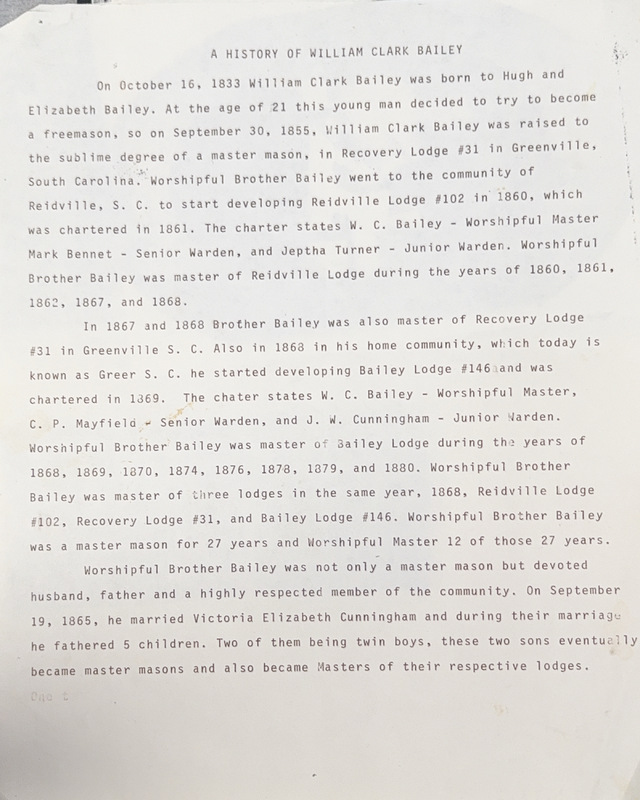 The purpose: "dedicating and consecrating a Marker in honor of Worshipful Brother William Clark Bailey."