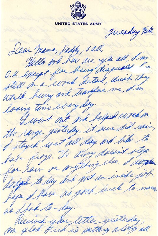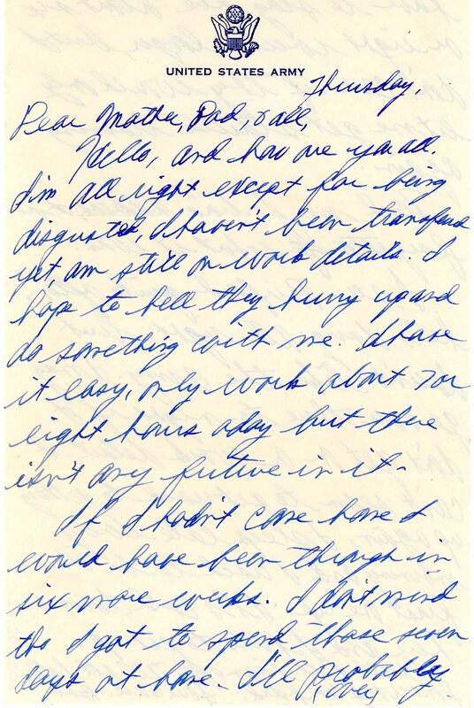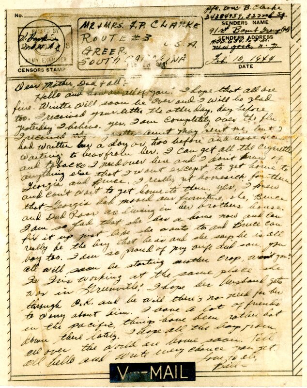 Letter addressed to "Mother, Dad, +all:" on V-Mail stationary.