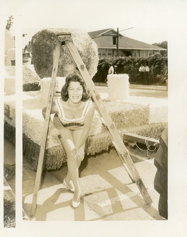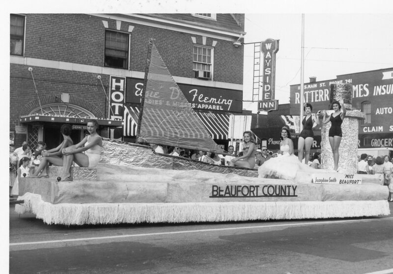J. P. Stevens & Co. Inc. Peach Festival parade float with Cecila Colvert, Miss South Carolina, and four other women. Photographed by Joe F. Jordan. (small duplicate of 2023.16.4)