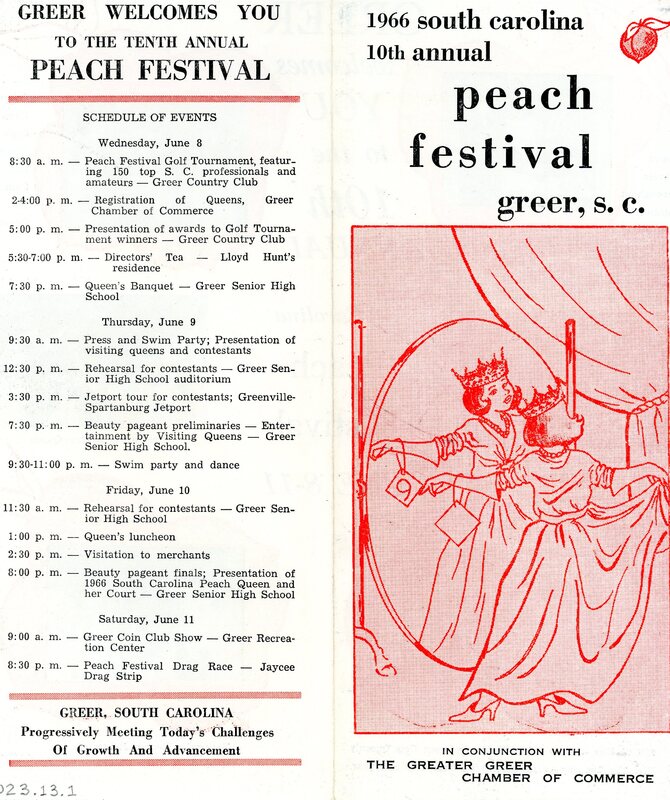 S. C. Peach Council parade car, including B. E. Gramling (President), Walter Rawl (1st Vice President), L. V. Caggiano (2nd Vice President), Roy Ferree (Secretary and Treasurer). Photographed by Joe F. Jordan.