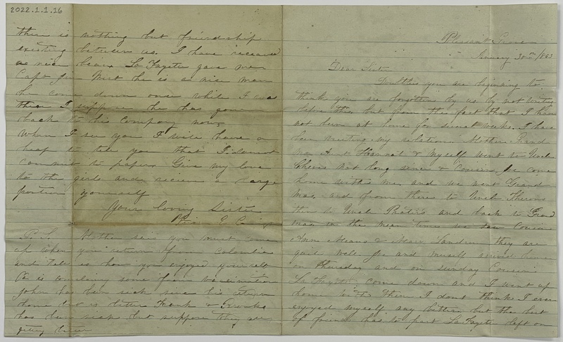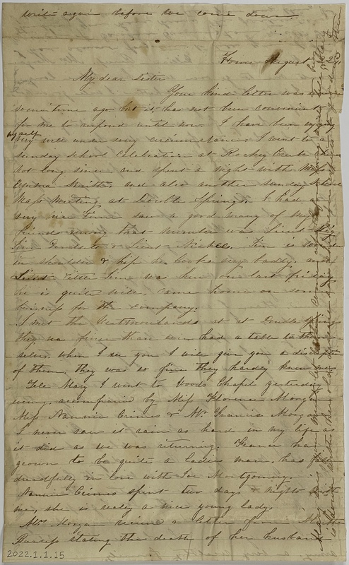 This is the last letter from Victoria which mentions her brother Mike, fighting in the Civil War; he would be killed in battle about a week later. This letter, likes the last, mentions her future husband W. C. Bailey, but not by name; she refers to him as "the widower."